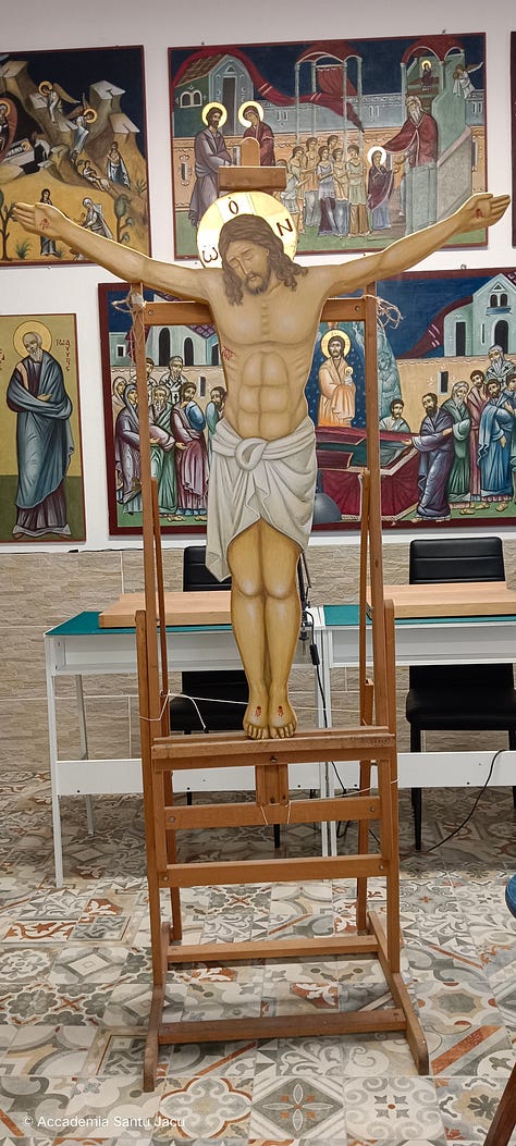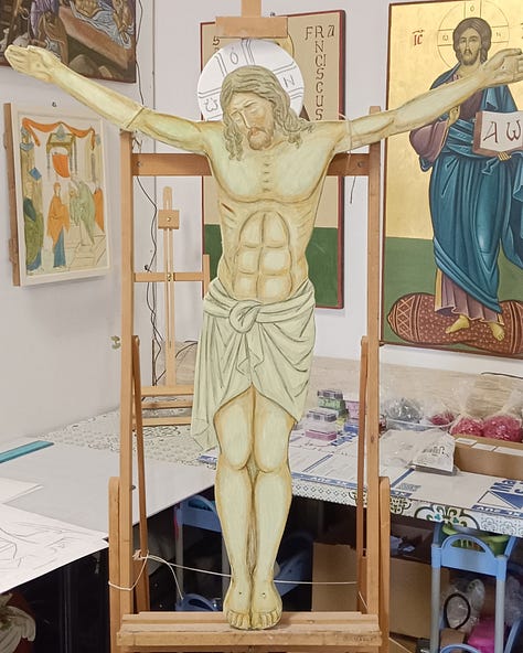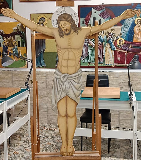 Dopo lunghi mesi di lavoro silenzioso e di preghiera, il Crocifisso (100 × 110 cm), scritto per una Parrocchia Ortodossa di Roma, finalmente è stato consegnato.